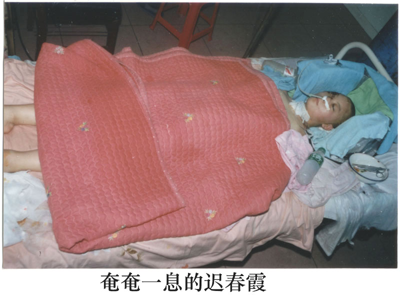2002年1月3日晚,黑龙江省密山市政保科孟、杜带其打手窜到密山二中西侧100米处的薛燕荣、迟春霞夫妇家中,在没有任何手续的情况下强行抄家,在没翻到什么他们要找的东西的情况下,把这一家三口(还有个2岁的孩子)强行抓进政保科,连夜非法审讯,在被迫害中,迟春霞被逼无奈,从四楼跳下,摔在二楼阳台上,昏迷不醒。第二天政保科的人看到她昏迷不醒的趴在那里也不管,直到4日下午,才把其送到人民医院二楼骨科,由于没有及时抢救,迟春霞手脚脸部均冻伤,脑血管破裂,割开气管输氧,所有医疗费用逼其家人承担。现在2岁的孩子给薛的哥嫂照管。薛燕荣还在拘留所被非法关押。