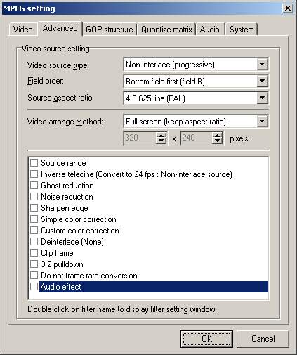 3. 在列表框中用鼠标双击最后一项“Audio effect”(声音效果),这时会出现一个“Audio effect”的窗口,如下所示: