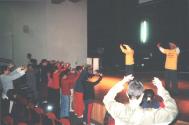 几周前一个星期五中午时几位学员来到学校。礼堂的负责人帮助我们准备作大法介绍的设备。学员们打算放映几个VCD影片。由于礼堂没有放VCD光盘的设备,学员自己从家里带来放映机。开始负责人不同意使用学员的放映机,说接线太复杂了。无论学员怎样解释只接两根线就可以了,这位负责人还是不同意。另一位学员提议在讲话的时候发正念。当学员刚一开始发正念时,这位负责人马上就同意了,好像从来都没想过要拒绝一样。大家又一次体会到了正念的威力。