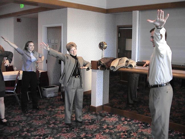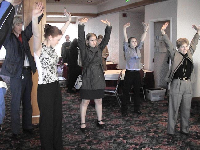 一位来自中国大陆的老师邀请大法弟子到他任教的美国中学共度春节晚会,演示法轮功功法。很多人马上表示要找炼功点学炼。