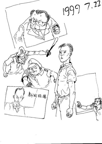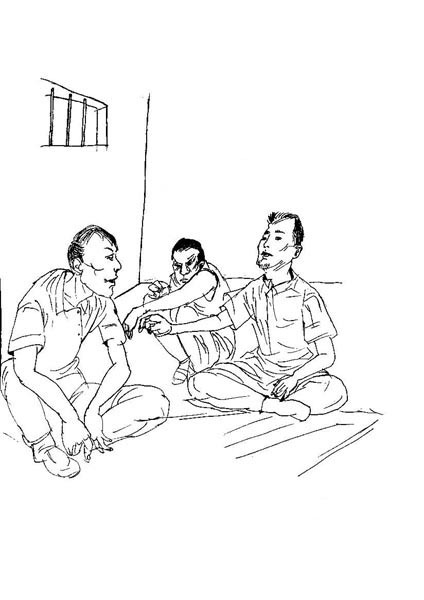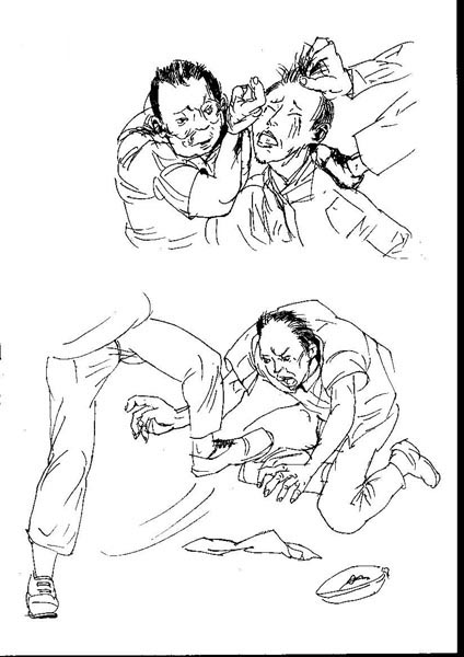 | 7.同年12月3日,他又被非法转入刑拘第三号监室。在那里受到了犯人们惨无人道的迫害。犯人们让他睡在水泥地上(长达四、五十天)。每次晚饭后都毒打他,有一次王金国被打得发出了痛苦的声音,这时犯人卜明星、刘志国等三人象恶狼一样一拥而上,又把他狠狠地摔在地上。 | 8.还有一次,犯人用手指狠狠地弹他的眼球,痛得他眼泪哗哗直淌。恶徒却称之为“弹灯泡”。犯人还常常穿着硬硬的皮鞋,照他的心窝使劲地踢,这经常使他上不来气,疼痛不已。 | 9.最严重的一次,狱霸卜明星给王金国“打榨菜”,他抡起双拳左右开弓,拼命照王金国脸上不知打了多少下,致使王坐立不住,大口大口地呕吐。此时王金国已被迫害得心、肺、肾功能急剧下降,脑袋肿大,呼吸困难,尿血,周身无力,血满衣襟。面对这一幕幕,看守所的管教却视而不见,反而鼓励犯人们的暴行。 |