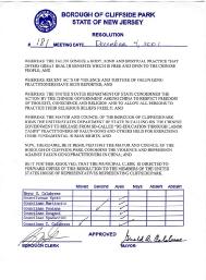 新泽西州南安波溢市议会通过决议 强烈谴责江泽民政府镇压法轮功