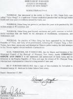 为此,新泽西州维内克市(Borough of Wanaque)市长和市议会特作出如下决定:强烈反对和谴责对法轮功及在中国的法轮功学员的镇压和迫害;呼吁释放已经在中国关押很长一段时间的滕春燕医师。