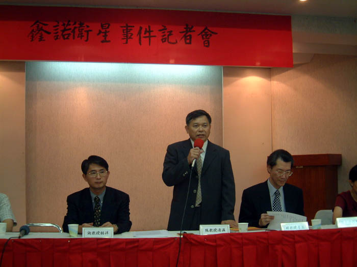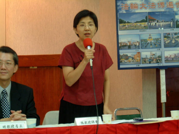 记者会由台湾法轮大法学会理事长、台大经济系张清溪教授主持,与会台大师生包括:政治系主任明居正教授、新闻研究所所长张锦华教授、法律系教授谢铭洋,理学院秘书戴瑞鹏,研究生吴政翰,大学部学生吴禀勋、李佳鸿、张东旭等。今年七月曾于美国华盛顿国会山庄前,发言支持法轮功的立法委员陈茂男,闻讯也赶来声援致意。
