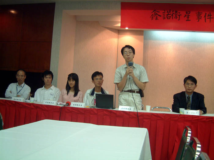 【明慧网2002年10月1日】针对中国当局指称台湾法轮功学员涉嫌鑫诺卫星盖台事件,法轮功在台大的「师」「生」社团(台大法轮功分会与台大法轮功研究社),特别于九月二十六日假台大校友会馆,联合举办记者会,说明他们对此一引发台湾媒体与民众广泛关心事件的看法,并呼吁全世界所有善良人士一起了解真相,终结迫害。