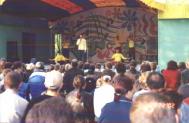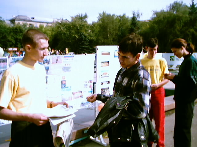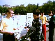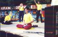 后来,我们又去了市中心公园,在那儿正举行市里各创作团体的音乐会。我们征得了公园经理的同意,让我们在台上演示了功法,一个小姑娘站了起来,和我们一起炼功。我们祝愿“真善忍”能扎根克拉玛托尔斯克市民的心中,给人们带来幸福。