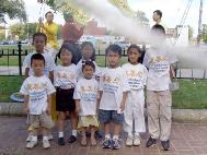 | 部分明慧学校的小朋友集合,准备参加中国城的游行 | 明慧学校的师生在DC中国城的游行中 |