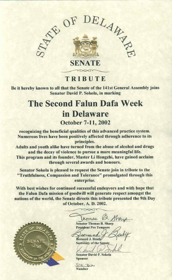 特拉华州第二届法轮大法周表彰这一高层次修炼系统的诸多益处。无数的人们通过遵循其原理而受益。