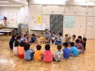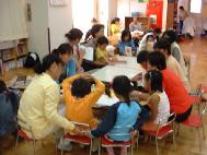 目前开设大小二个班。我带的是大班,除了过去在儿童学法点上熟悉的孩子以外,有几位是第一次来集体学法,他们稍有些沉不住气的样子,很想和熟悉的小同伴多说几句话,多玩一些时间。我想他们已是十岁左右的学生了,在这里是个儿高的了,又是第一次同大家在一起,不妨先看看他们的状态再说。有几个在打坐准备开始时提出想多玩一会儿,我说行啊。于是我招呼别的孩子坐下炼静功,当炼功音乐响起炼功开始之后,她们也赶紧坐下炼功了。不过当时她们并没有回到队列中去。我看她们都开始炼功了,就轻轻地走到她们的身边,为了避免惊动她们,我先悄声打个招呼说“对不起了”,然后把二人抱入队列中摆好。第三个孩子看见那两个都已经毫无怨言地归队了,她也悄悄地主动把身体移入队列中。看到这一幕真为她高兴:真是个好孩子,知道修正自己。