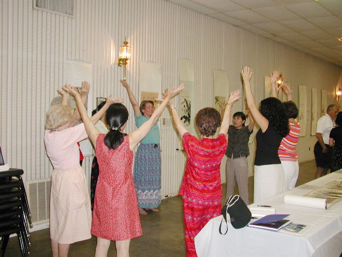 很多当地及周围城市的居民来参观了画展。主要报纸、电视台(ABC, CBS)都进行了现场采访和及时报导。人们听到华侨画家章翠英的修炼大法和为说真话被迫害入狱的经历,无不感动,有的甚至落泪,纷纷表示愿意尽他们所能来帮助法轮功学员。有的记者来回好几次,留连忘返。几位当地居民一直在展厅驻足一天,舍不得离去。他们还去介绍他们的亲朋好友来参观。三五成群的人们心口相传,争相而来。许多人当场要求学炼功法。