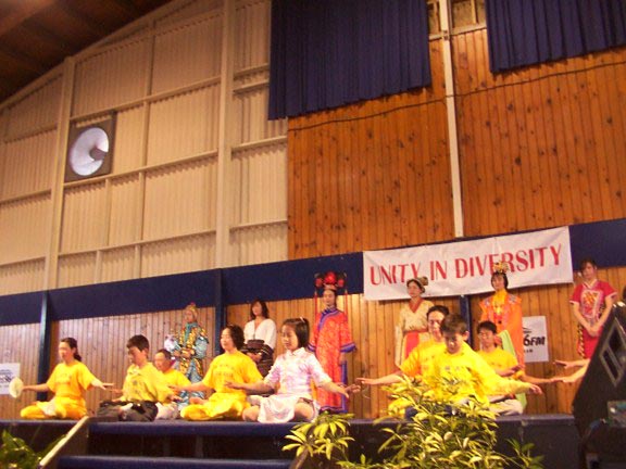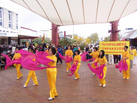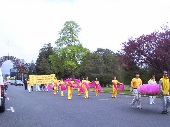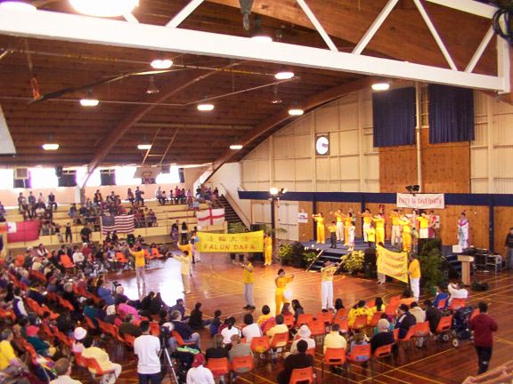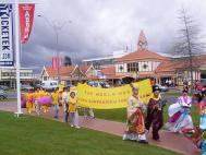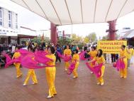 当地最大报《每日邮报》(The Daily Post)10月14日,头版以四分之一版面加图片报导了大法弟子身着古代服饰参加多元文化节活动,并介绍法轮功是结合了柔和的运动和打坐。