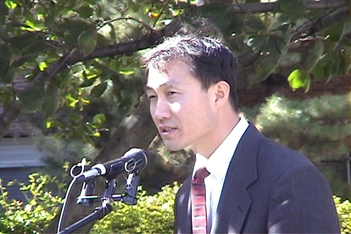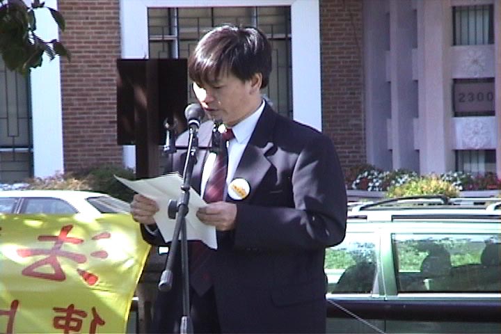 | 工程学博士徐先生讲述亲人被迫害的情况 | 新闻发布会主持人余先生向媒体介绍此次活动内容 | 法轮功学员呼吁停止江集团对法轮功的迫害 |