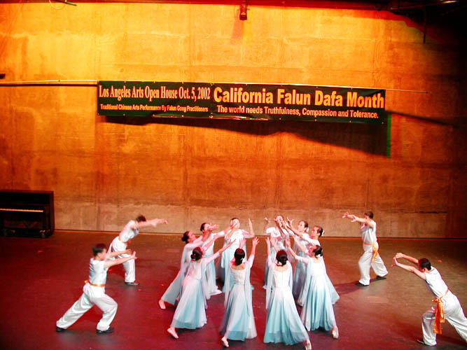 洛杉矶法轮功学员为服务社区,也义务参加了这次活动,于10月5日下午3:30~4:30在洛杉矶市中心的剧院中心向公众表演了一个小时的节目,包括中国古代服装表演,剑舞,歌曲、功法表演等,最后是集体舞“回归的旅程”,表现了大法弟子从得法开始修炼、经历魔难、到最后正法后回归的过程。