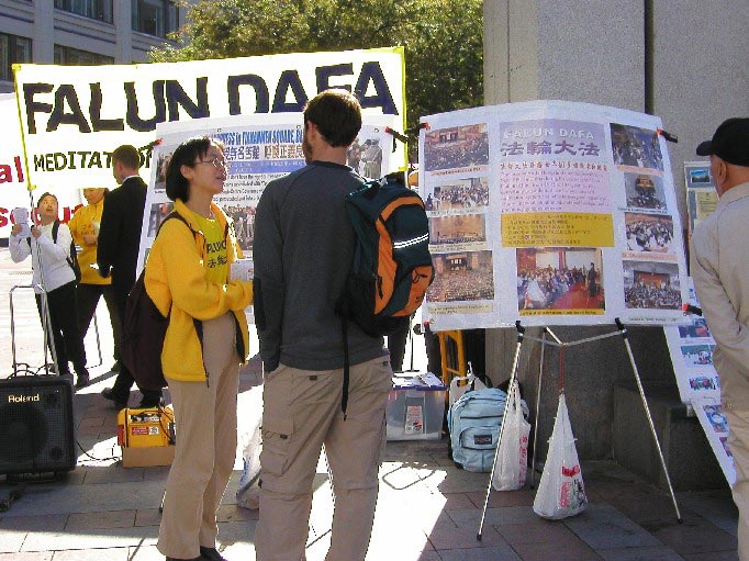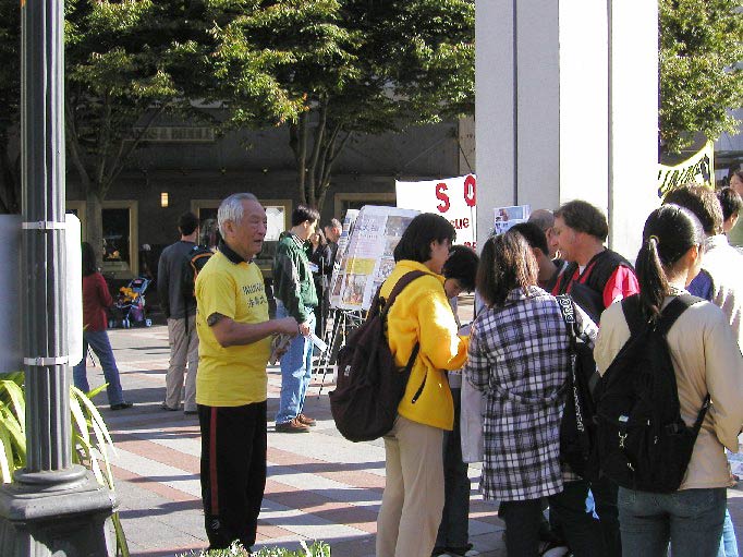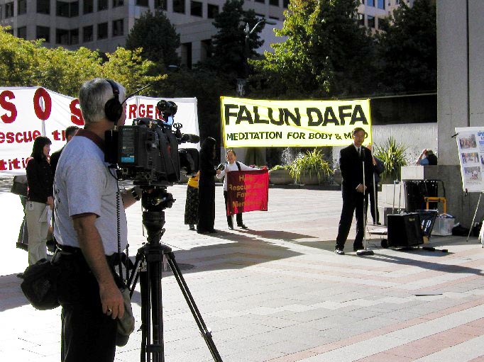 10月16日中午12:00,西雅图学员在市中心西湖广场举行了新闻发布会。到场的有西雅图P-I报(Seattle Post Intelligencer)和电视15台。当地三家中文报纸分别电话采访或已在当日登载了这条消息。在会上,学员发言呼吁人们发出正义援助之声,使亲人们早日从监狱劳教所中走出来。新闻发布会同时展出了正法之路图片展,吸引了许多路人观看。