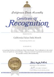 表彰10月作为“加利福利亚州法轮大法月”。我们赞赏你们为促进身体与心灵健康所作的努力。祝愿你们继续弘扬并成为社区的优良财富。