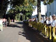 9月23日下午,丹麦大赦国际组织的成员,穿着用中文写的“人权”, 举着大赦国际标志的“反对酷刑”的标语,在中国大使馆前和平示威。当他们的代表念完声明后,有人提议:“让我们全部转过身去,面对着他们(使馆的工作人员) ,让他们看清楚我们的T恤衫上的字。”
