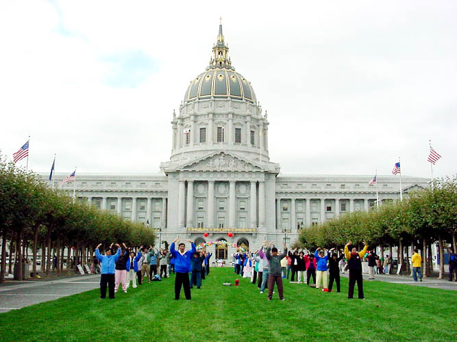 | 法轮大法月庆祝活动现场 | 旧金山市议员克瑞斯-戴利 | 集体炼功 |