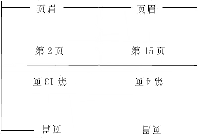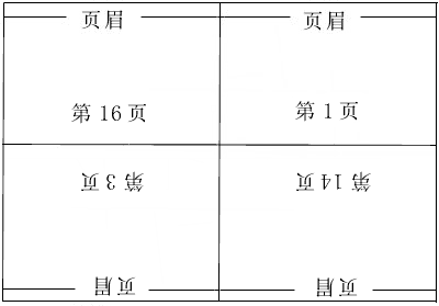 先放一张A4的打印纸,输入页码 16,1,版数为2版,按纸型缩放为16开纸。(即一张纸先打一半)再按“确定”按钮即打印此页。将打印完的这页转180度再原样放回打印机,然后再输入页码14,3,版数为2版,按纸型缩放为16开纸。再按“确定”按钮打印此页(即打纸的下一半)。这样打出来的结果是页脚对着页脚。页眉在纸的两个顶端。注意放纸的时候一定要搞明白顺序,这是一个非常重要的环节。)然后再打另一面,顺序跟上边的一样,输入页码2,15,版数为2版,按纸型缩放为16开纸。最后输入4,13,版数为2版,按纸型缩放为16开纸。这样一张纸的模板就出来,另外的几页依次类推。