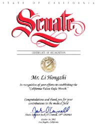 加州众议院第77区议员褒奖李洪志先生
