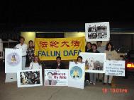 下午亚特兰大汽车之旅同来自达拉斯的五位学员在泰勒市政厅前及泰勒市中心广场联合举行新闻发布会,并接受泰勒报和KLTV电视台现场采访。五位学员真诚,全面地向本地报界,电视台介绍大法真相,揭露了江氏集团在中国残酷镇压、迫害大法及大法学员的暴行,并演示了五套功法。来自DC的徐教授(原清华大学副教授)讲述了他的遭遇。他的妻子因修炼法轮功在国内被关押,十三岁的儿子现无人照管。新闻发布会后,大法学员庄严地发正念,清除另外空间一切邪恶因素。