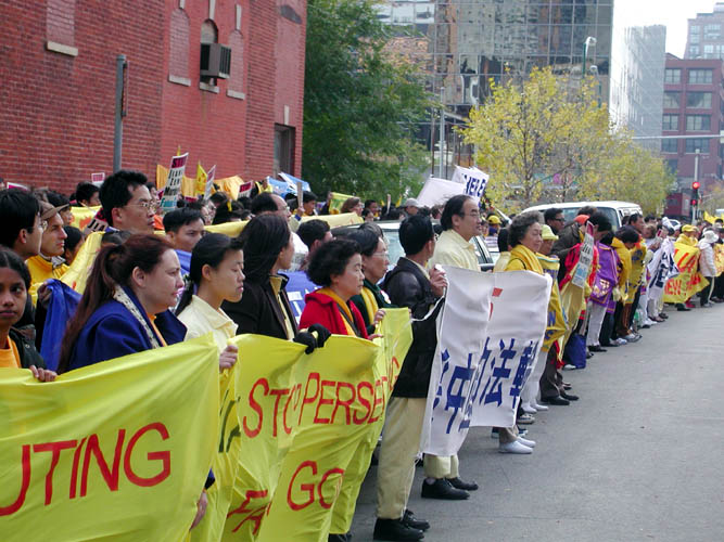 七名法轮功学员并于今天在芝加哥对江泽民提起法律诉讼。起诉人分别来自加拿大、美国、法国、澳洲、爱尔兰和香港等七个国家及地区。八名原告分别是:香港居民朱柯明、爱尔兰居民赵明、澳大利亚居民戴珍妮及詹尼弗-曾、法国公民Helene Petit,美国公民Levi Browde、加拿大公民Zenon Dolnyckyj。