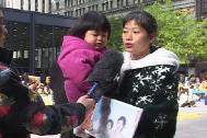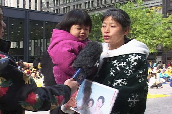 集体炼功过后现场新闻发布会于11点开始,首先上台陈述的是澳洲的戴志珍女士和她两岁半的女儿,戴女士的丈夫陈承勇因为坚持修炼法轮功,在中国被警察多次逮捕并遭受酷刑,最后折磨致死,尸体被弃荒郊,年仅三十四岁,只留下年轻的妻子和年幼的女儿。进而不人道的是,戴女士希望拿到丈夫骨灰的起码要求,竟也无法实现。后经澳大利亚政府出面斡旋,八个月后才将骨灰取回,戴女士今天含泪申诉:这场迫害再也不应该延续下去了。