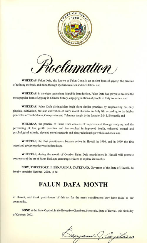 鉴此,我,本杰明.卡亚特诺(Benjamin J. Cayetano),夏威夷州州长,在此宣布2002年10月为夏威夷