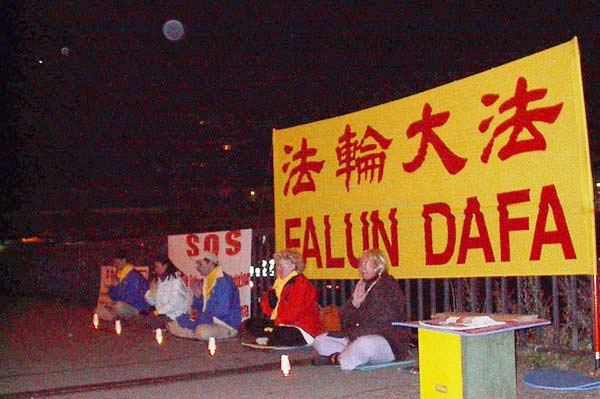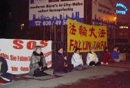 【明慧网2002年10月25日】从10月20日开始德国学员每天晚上在柏林中使馆对面的大桥上发正念。