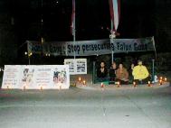 他表示,法轮功学员只做三件事,一是以真善忍约束自己的思想与行为;二是放弃不良习惯与思想;三是以炼功舒筋活络。这些良善的学员却遭到中共[江氏]当局的恐怖镇压。他说,只要江XX一天不停止镇压法轮功学员,法轮功就一天不停止地对他展开和平抗议。
