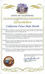 鉴于,自从1995年法轮大法在本州洪传以来,许多加利福尼亚州居民已经能分享和接受他的功法和理论,在全加州不同的社区场所有无数的讲座和教功班举办;