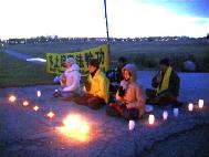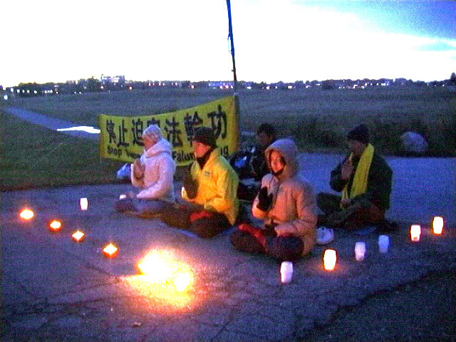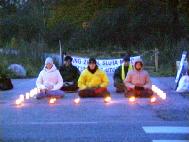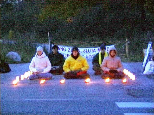 【明慧网2002年10月27日】许多瑞典学员直接在美国参加针对大陆独裁者的和平抗议活动,在斯德哥尔摩未能赴美的学员自10月22日起,集中在中使馆前进行了集体炼功、发正念、烛光守夜等系列活动,与世界各地的法轮功学员同步助师正法。