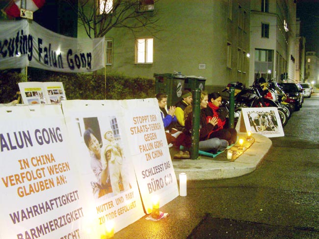 【明慧网2002年10月27日】2002年10月26日,星期六,奥地利大法弟子在中国驻奥地利大使馆前发正念,这是我们本周举行的系列活动之一,也是目前全球正法与清理其它空间邪恶物质因素活动的一部分。