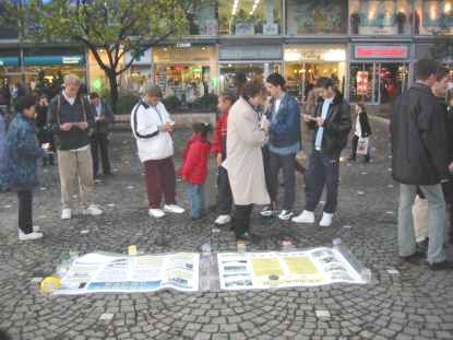 还有一次,从南阳来两位功友,在某公园送资料,被便衣发现跟踪。他俩赶快把资料放进花草中。便衣把功友带走了。