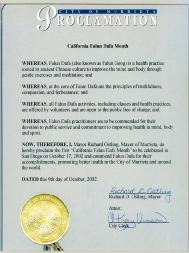 美国加州圣迪市市长宣布02年10月为圣迪市法轮大法月