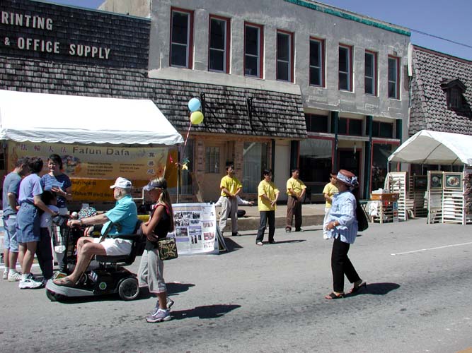 在游行持续了一个多小时后,我们进行了展览活动。很多观众都驻足于法轮功的展位前,留连忘返。在展位前,放了几张大法洪传世界和大法在国内遭受的迫害的图片。很多观众还是第一次听说大法与迫害的事实。一些人对大法产生了浓厚的兴趣,准备开始学炼大法;同时,他们也对法轮功遭受的迫害表示了深深的同情,希望迫害能够尽快停止。