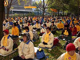 两千余名法轮功学员到达克劳福得并举行新闻发布会(图)