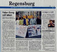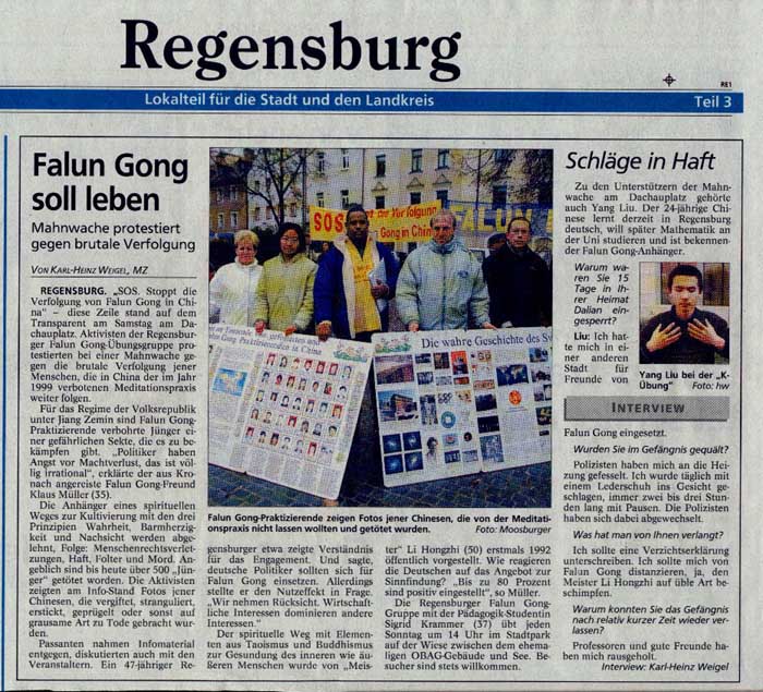 一位24岁的中国留学生,法轮功修炼者,也参加了这次抗议活动,他目前在雷根斯堡学德语。