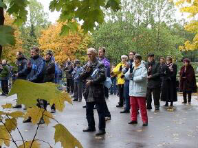 9月28日莫斯科当地时间晚7-10点,与会的大法学员在中国大使馆前冒雨点燃烛光悼念被江氏邪恶集团迫害致死的同修,并发正念清除另外空间的邪恶。29日上午大法学员再一次来到使馆前和平请愿,要求停止迫害在中国的法轮功学员;抗议在外国散布诋毁大法和大法学员的谎言。学员的请愿活动得到了路过这里的莫斯科市民的支持。俄罗斯媒体在当天作了正面的报道。