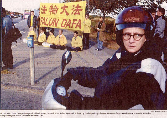 【明慧网2002年10月5日】2002年9月24日,丹麦的最大报纸《日德兰邮报》分别在头版、第二版和第四版登载了法轮功学员在欧亚高峰会地点和平请愿的照片及相关文字报道。