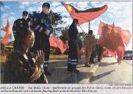图二以上是第二版上的大幅照片。文字说明:“和平地——来自丹麦、中国、波兰、德国、荷兰和法国的法轮功追随者参加了示威活动。他们的横幅显示至少有477位法轮功追随者遭受酷刑迫害致死。”