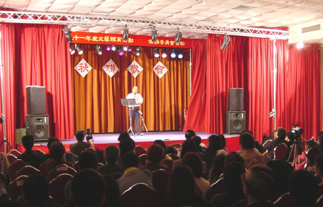 【明慧网2002年10月6日】九月二十九日,在中国传统中秋节期间,法国法轮大法协会在巴黎华侨文教中心举办了中秋联欢会。当地各界人士两百多人参加联欢会,联欢会后播放了有关介绍法轮功的影片及交谈和聚餐活动。请看图片报道。