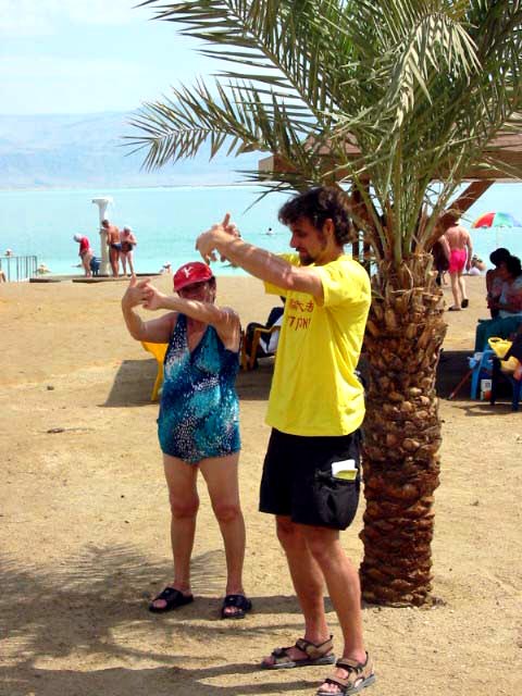 | 10月3日,在耶路撒冷的广场上演示功法 | 10月4日,在死海旅游景点洪法炼功 | |