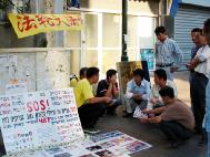 | 10月5日,学员们到中国劳工聚集的地方讲清真相 | ||