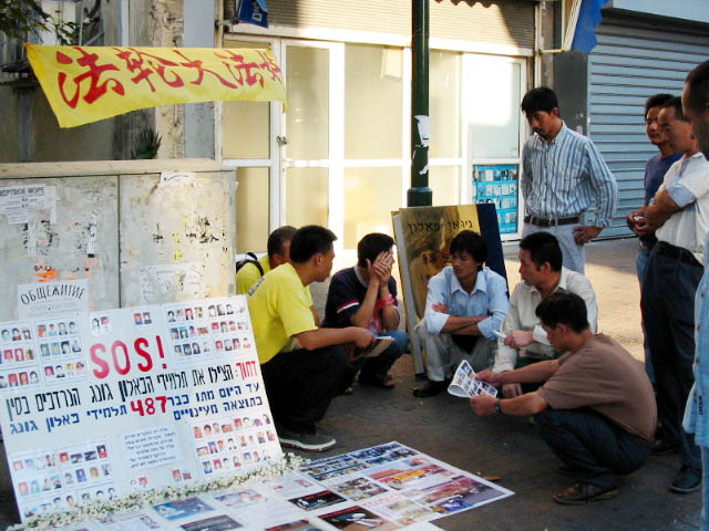 10月5日,学员们分成两组。懂中文的学员到中国劳工聚集的地方讲清真相。其他学员到以色列北方的两个城市洪法。当天晚上(半夜)又来到中国大使馆,参加星期天早上的全球发正念。