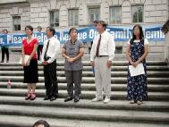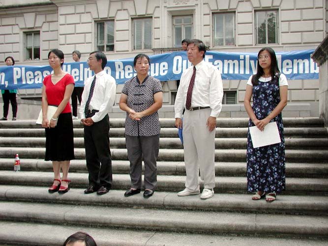从澳大利亚赶来的戴志珍女士,牵着她两岁的女儿走上台,讲述了她一家的悲惨遭遇。她的丈夫──孩子的父亲因炼法轮功,在中国被迫害致死;她丈夫的姐姐因炼法轮功仍被非法关押在狱中;她的公公因不堪忍受儿女们遭受这样的迫害而悴然离世。现在戴志珍忍着自己的悲痛,坚强地站起来,告诉人们在中国发生的残酷迫害法轮功学员的事实,揭露江XX政治流氓集团的谎言和恶行,请善良的人们共同制止这场对修炼真、善、忍的法轮功学员的迫害。她以平静的口吻讲述着……最后大学生们报以热烈的掌声,表达着他们对法轮功学员的钦佩。