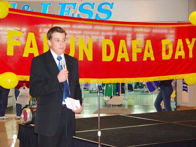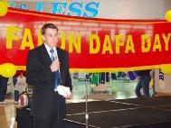 “今天来到这里的人们和我一样对法轮大法了解不多,我鼓励人们抓住这个机会,去了解我们并不了解并不熟悉的事物,了解我们这个社区中的另一个团体。我们的社区将会更加多元化、更加充满欢乐,成为更友好的居住地方。非常感谢有机会在此发言,希望大家能够喜欢这里的洪法活动。”