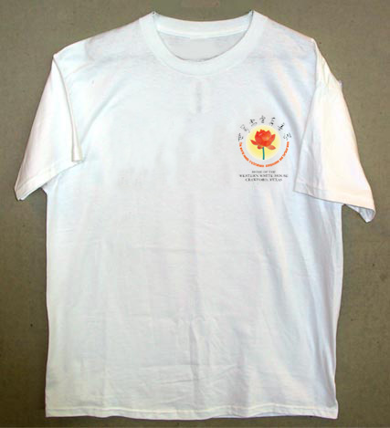 | “世界需要真善忍”--西部白宫之家这样的T恤 | 出售“世界需要真善忍”T恤的店主与大法弟子合影 |