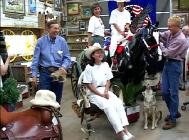 我们深深地理解你们对克劳福德的自豪感,不仅因为克劳福德是你们美丽的家乡,而且是总统先生的故乡。我们来这里的目的是和你们分享我们从法轮功中得到的益处,并让你们了解我们的亲朋好友在中国国内所承受的苦难。在过去的三年中,尽管法轮功在中国受到残酷的迫害,从来没有发生过一起学员用暴力方式回击的事件。我们和平、安祥、智慧地向中国政府呼吁制止迫害的行为在世界各地享有盛誉。我们为在克劳福德举办章翠英女士画展做准备时,政府官员对当地问及我们的居民说:“你们不用为他们[的到来]担心,他们都是祥和友善的人。”