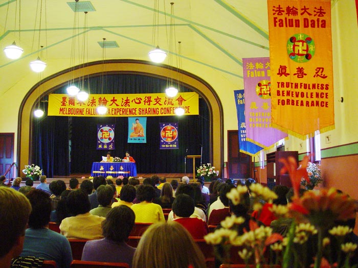 经过精心布置的会场气氛祥和。7个小时的心得交流会后,是大法弟子们在百忙中排练的一台别开生面的“回归之路”音乐会。参加演出者最小3岁,最大70多岁,全部是业余演员,绝大部分是从来没上过舞台的。但是他们用心的表演却赢得了阵阵的掌声和感人心肺的泪水。台下在坐的有市议员、社团知名人士、法轮功家属及朋友。