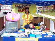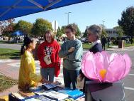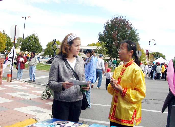 【明慧网2002年10月9日】2002年10月5日,我们参加了爱荷华州爱美思市展示东西方文化的多元文化节活动。活动组织者请求我们展位代表中国向访问我们展位的游人提供印有中国地图的贴签,我们欣然接受。文化节上,我们通过向游人介绍大法,使更多的人了解大法的美好和纯正,以及江氏集团对法轮功学员人权的无理残酷践踏。不少人都已经知道了这场发生在中国的